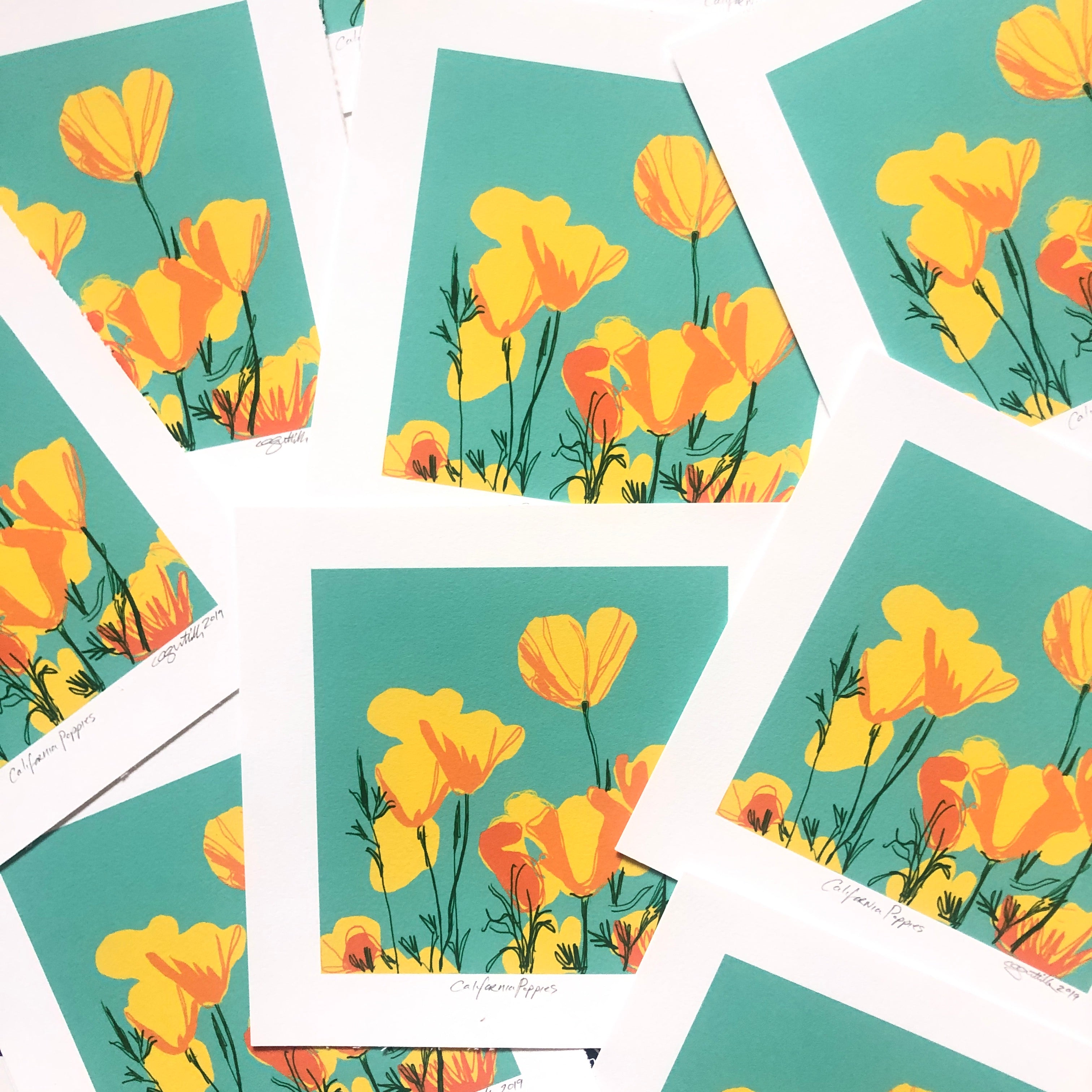 California Poppies (Eschscholzia californica) Square Greeting Card 5.25-inch (13.3 cm), Blank Inside, Bright Floral Stationery